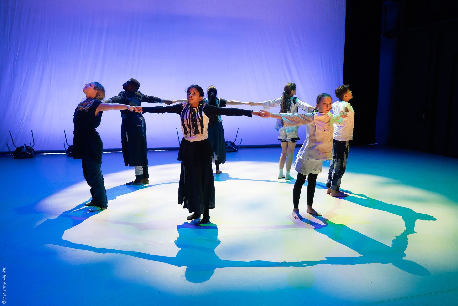Accompanied by the experienced dancer, dance educator, and choreographer Marion Amschwand, as well as professional dancers from Of Curious Nature, the children and young people embody the role of liquid gold as both an element and a habitat. Here, diverse dance styles and choreographies flow together, like the many rivers that feed the ocean. The piece alternates between scenic embodiments and dance symbols, blending playfulness with reflection. “Liquid Gold” appeals not only to the mind but especially to the heart, as empathy and solidarity are urgently needed to inspire change.
